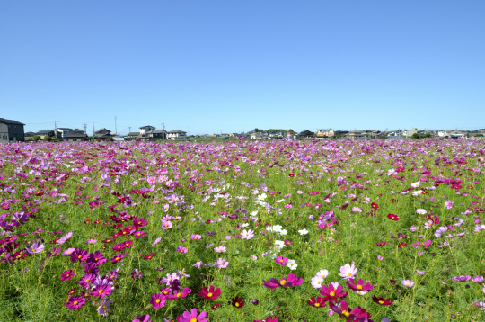 安城市赤松町コスモス畑は安城産業文化公園 デンパークより車2分(1,000m)。