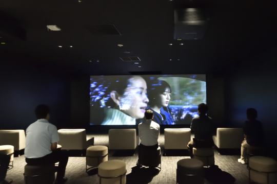 まずは入口の扉。普段は開けたままになっていますが、ガイドツアーの時にはスクリーンになり、スタイリッシュな映像が映し出されます。
