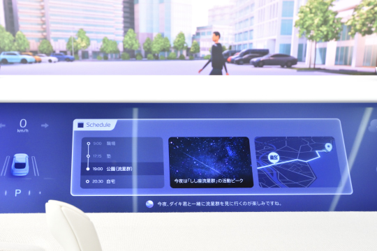家族構成やその日の予定に合わせて寄り道ルートを提案してくれたり、近くの人気スイーツ店を教えてくれる、未来の自動運転が体験できます。