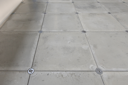 床には創立から現在までのデンソーロゴマークの遍歴。踏んでしまうとなんだか申し訳ないので、知ってからは和室の畳の縁を踏まないように歩くのと同じ感覚で歩くようになりました。
