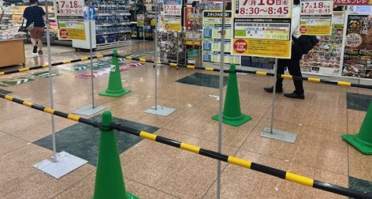 2025年7月17日アピタ刈谷店1階にパイロンとコーンバーが並びだしました。