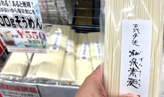 2021年8月12日来店。値札の上に茹で時間が表示されるようになりました。これは老眼が進む40歳以上の年齢層とワーキングマザーへの優しさか。季節もののそうめんだけかと思いきや、