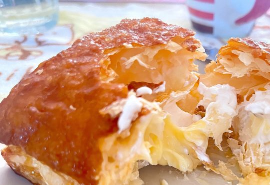 さっそく自宅へ戻り、味見しました。商品名「パリふわっ!ミルフィーユシュー」はだてじゃない!「パリふわ」なパイ生地は表面にザラメ砂糖がかかっていてカリッとした歯触り。中の生クリームとカスタードクリーム二層が量も甘さもほどよく気に入りました!リピ確定です。
