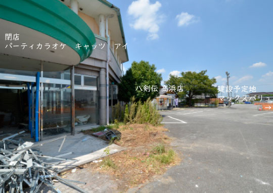 パチンコ店跡地の向いは居酒屋八剣伝 高浜店さん。
